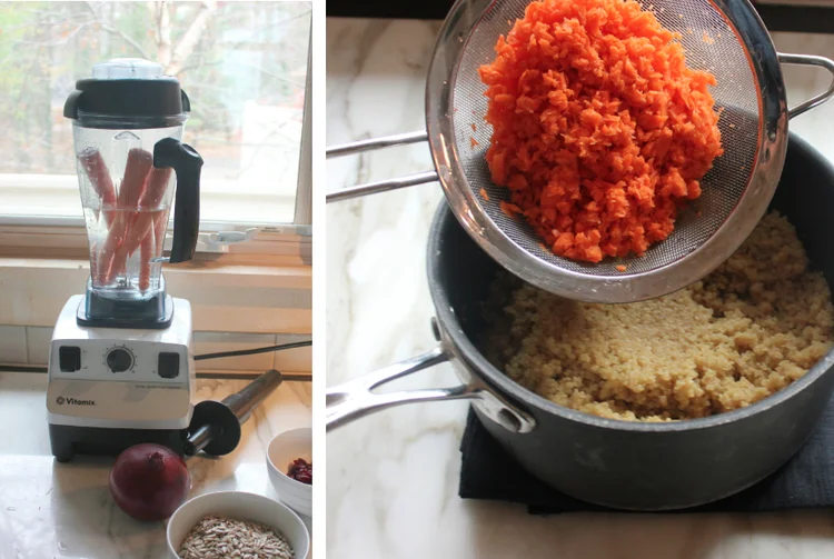 3. Chop the veggies - I like using the vitamix to wet chop (pictured above) my carrots because I am lazy but hand is also great too.