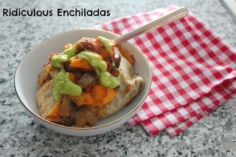 1. Preheat oven to 350F and grab a deep baking dish large enough for 8 enchiladas. Pre-cook the sweet potato, by simmering it in a small pot of water for about 5-10 minutes until just tender. Do not overcook. Drain and set aside. When cool enough to handle peel and mash the insides.